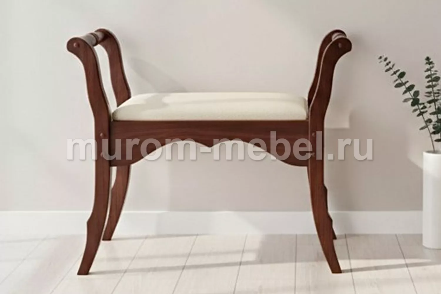 Банкетка изготовлена из древесины, оттенок которой можно выбрать из каталога. Массив сосны обладает такими существенными преимуществами как прочность, износостойкость, экологическая чистота и долговечность.
