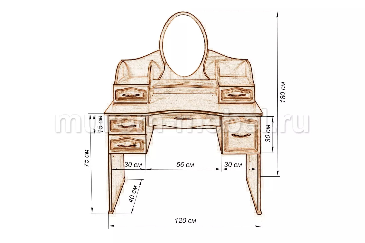 Эта модель дамского столика выделяется среди прочих из-за необычной конструкции. Важным её преимуществом является высокая функциональность.