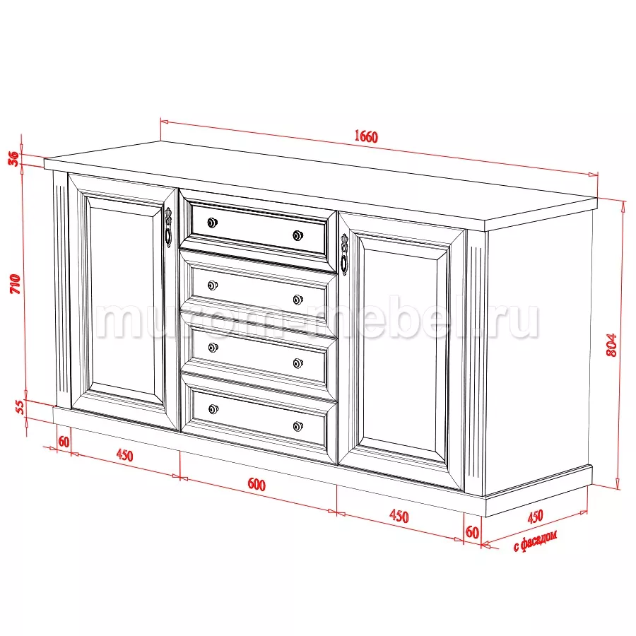 Изделия, находящиеся в серии "Валенсия", характеризуются отличным качеством обработки натурального материала, эстетически привлекательным внешним видом и хорошими эргономическими свойствами. Всё это присутствует в комоде из данной серии. Комод имеет 4 выдвижных ящиков, которые плавно и бесшумно открываются. Две распашные полки по бокам оснащают модель дополнительными местами для хранения. Фасад изделия украшен лаконичными ручками, которые можно заменить, как и оттенок комода. Стоимость комода отличная.