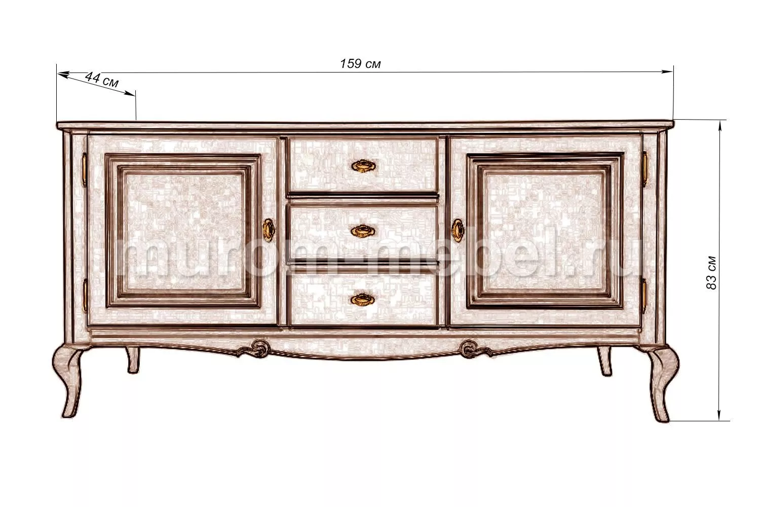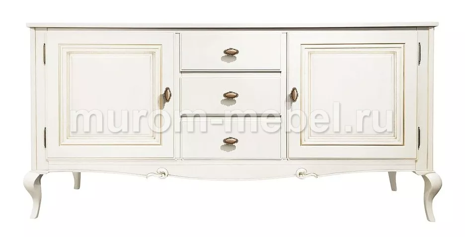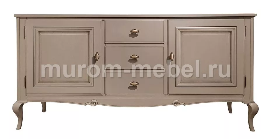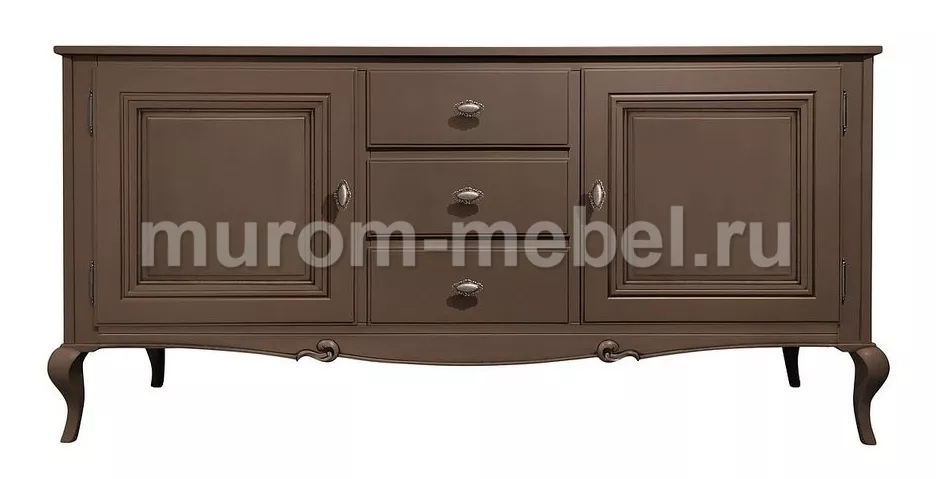 Стильный комод Шик 1 займёт достойное место в вашем доме. Он пользуется большой популярностью, что обусловлено его надёжностью в эксплуатации. Выглядит необычно. В качестве отличительной черты выступают изогнутые ножки и утончённая фурнитура. Для хранения предусмотрено 3 выдвижных ящика, расположенных в центральной части, и полки за распашными дверцами. Широкую и длинную столешницу также можно полезно использовать.