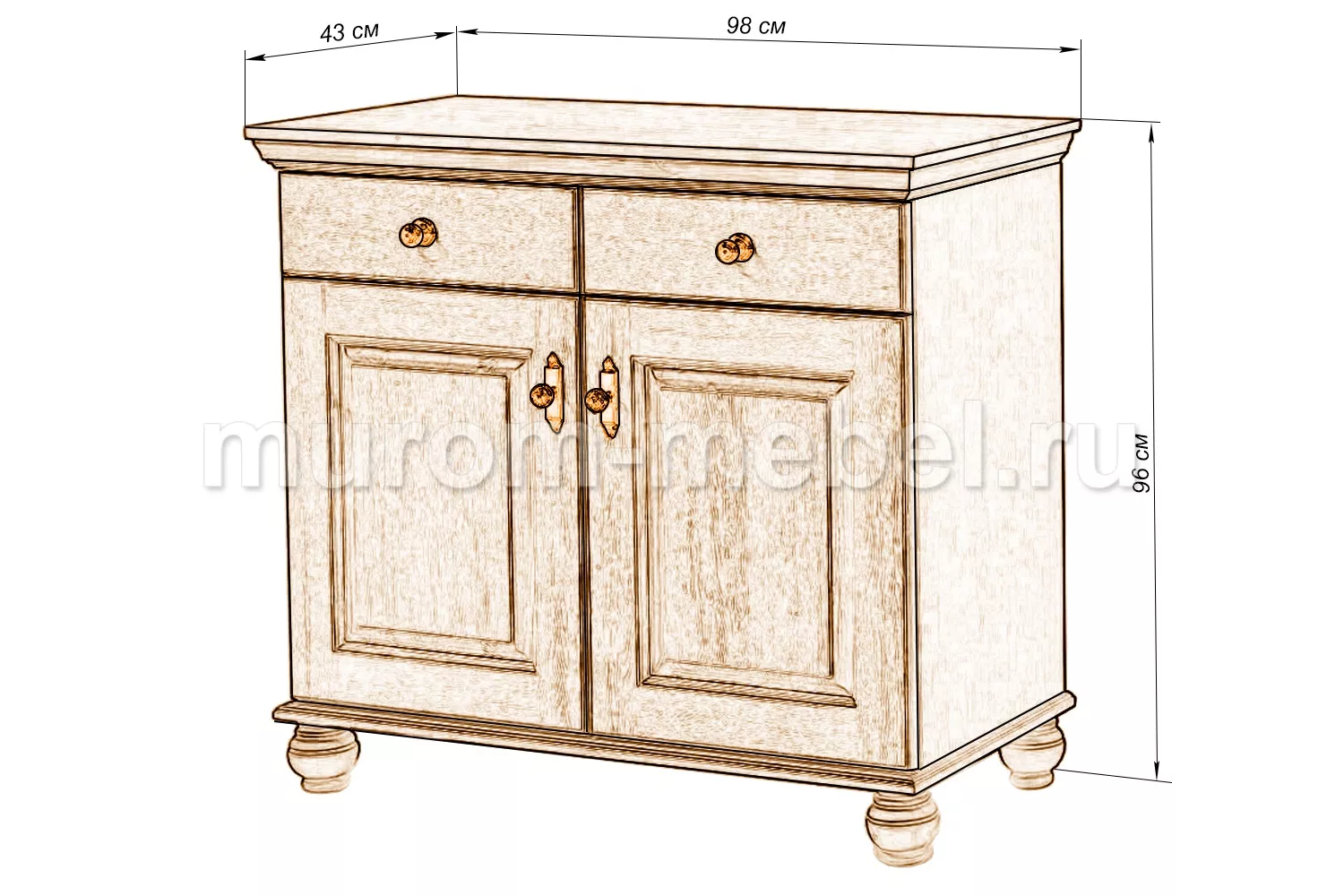 Для изготовления производитель Муром-Мебель использовал благородный массив дерева. Это высококачественный материал, полностью безопасный для здоровья. Комод из него прослужит долгие годы, сохраняя первоначальные характеристики и внешний вид.