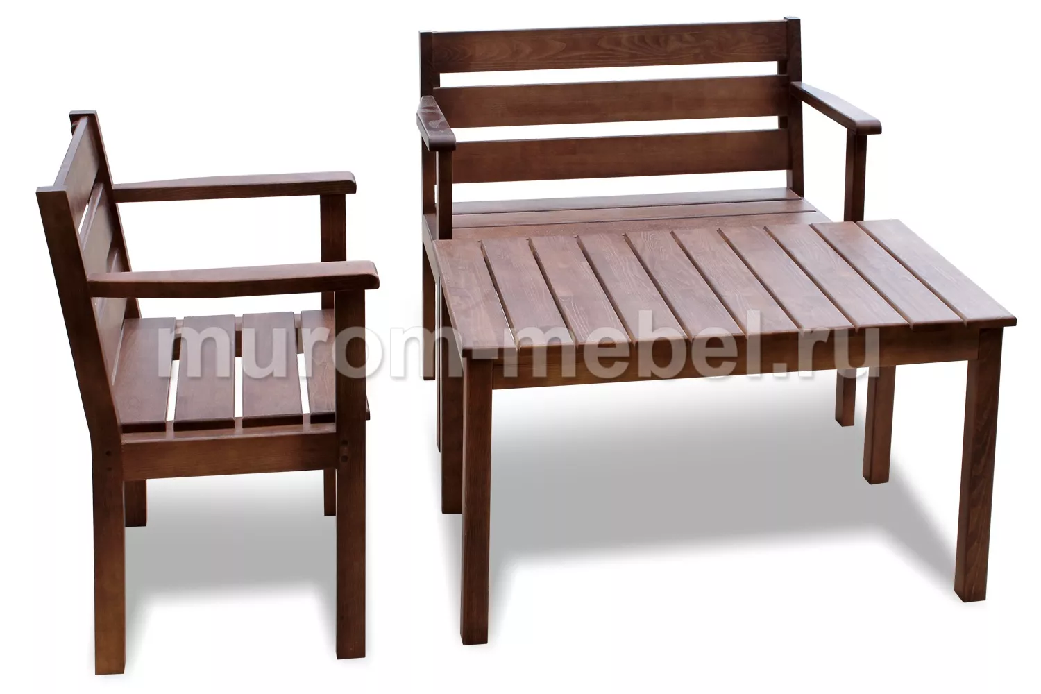 Комплект Дачник – набор мебели, с помощью которого можно удачно обустроить террасу, сад и т.д. Включает в себя 2 скамейки разной ширины и небольшой столик. Характеризуется лаконичным внешним видом, который гармоничен в разных интерьерных направлениях. Благодаря изготовлению из натуральной древесины, выглядит презентабельно и отличается продолжительным эксплуатационным сроком. Мебель устойчива к отрицательному влиянию внешних факторов. Она стойка к влиянию влажности, температурных изменений и пр. Прослужит долгий период времени, сохраняя первоначальные параметры.