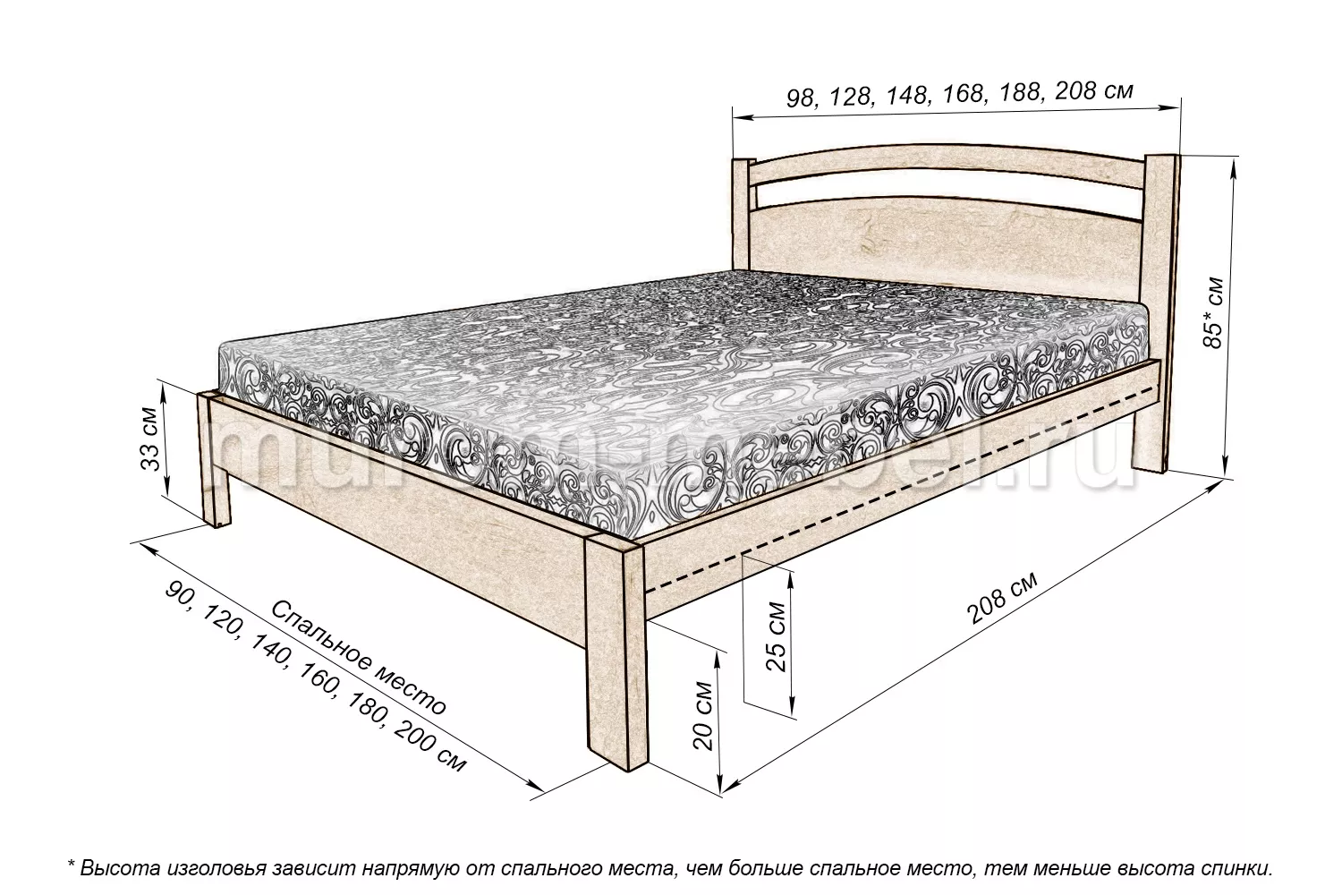 Кровать Бэлли выполнена из ценной и дорогой породы дерева в виде тахты (у неё отсутствует изножье). Это отличный вариант для организации спального места, особенно если в приоритете качество, а не шикарный дизайн. Она лаконичная, но стильная. Спинка Бэлли привлекательно и загадочно обрамляет головную часть кровати, так как имеет нестандартную форму. Создана мебель из высококачественной древесины, поэтому такую модель можно активно эксплуатировать долгие годы. Клиенту представлен самостоятельный выбор варианта расцветки поверхностей. Помимо этого, конструкцию можно дополнить подъёмным механизмом, ортопедическим основанием или дополнительными ящиками для постельных принадлежностей.