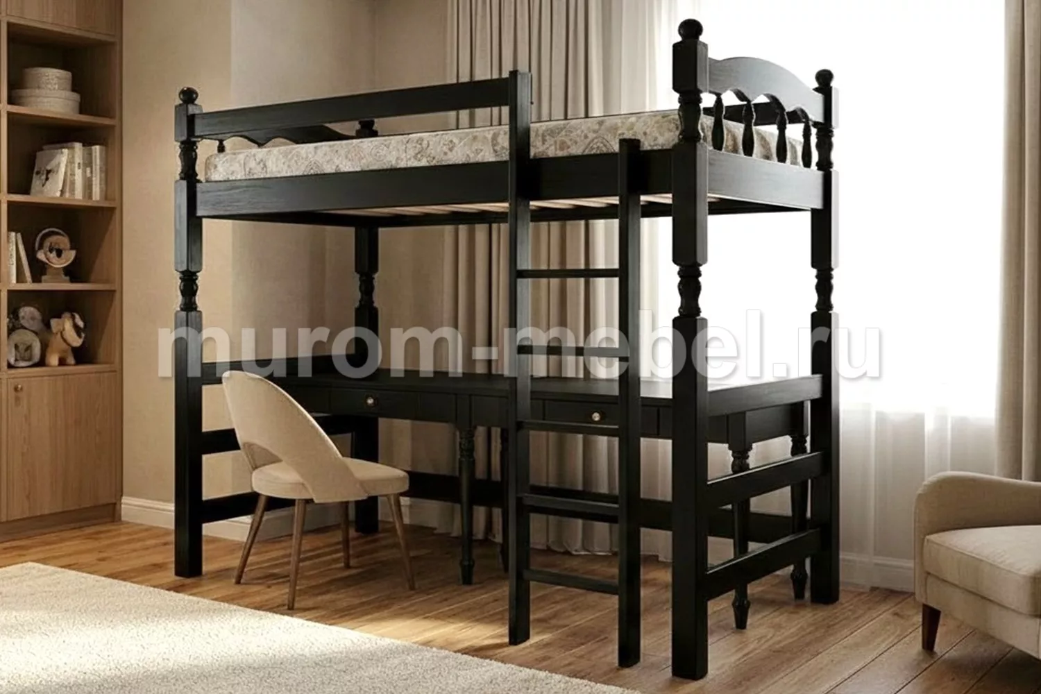Каждый из нас в детстве хотел влезть на чердак, чтобы разгадать какую-то тайну. Позвольте это сделать своему ребенку. Кровать «Чердак» наполнена таинственностью. Для Вас родители — кровать изготовлена из 100 % экологически чистого материала.