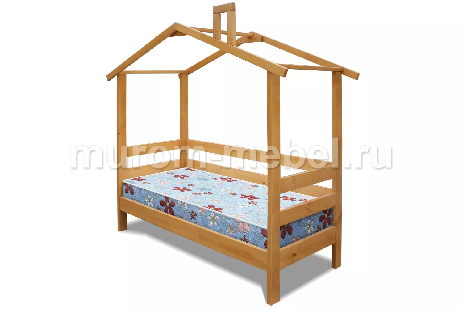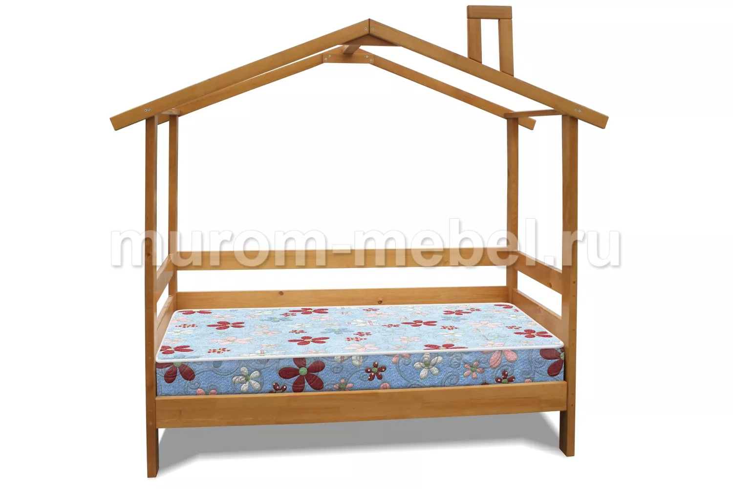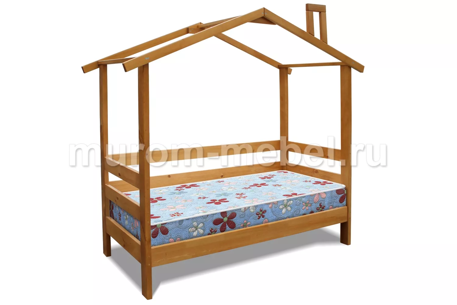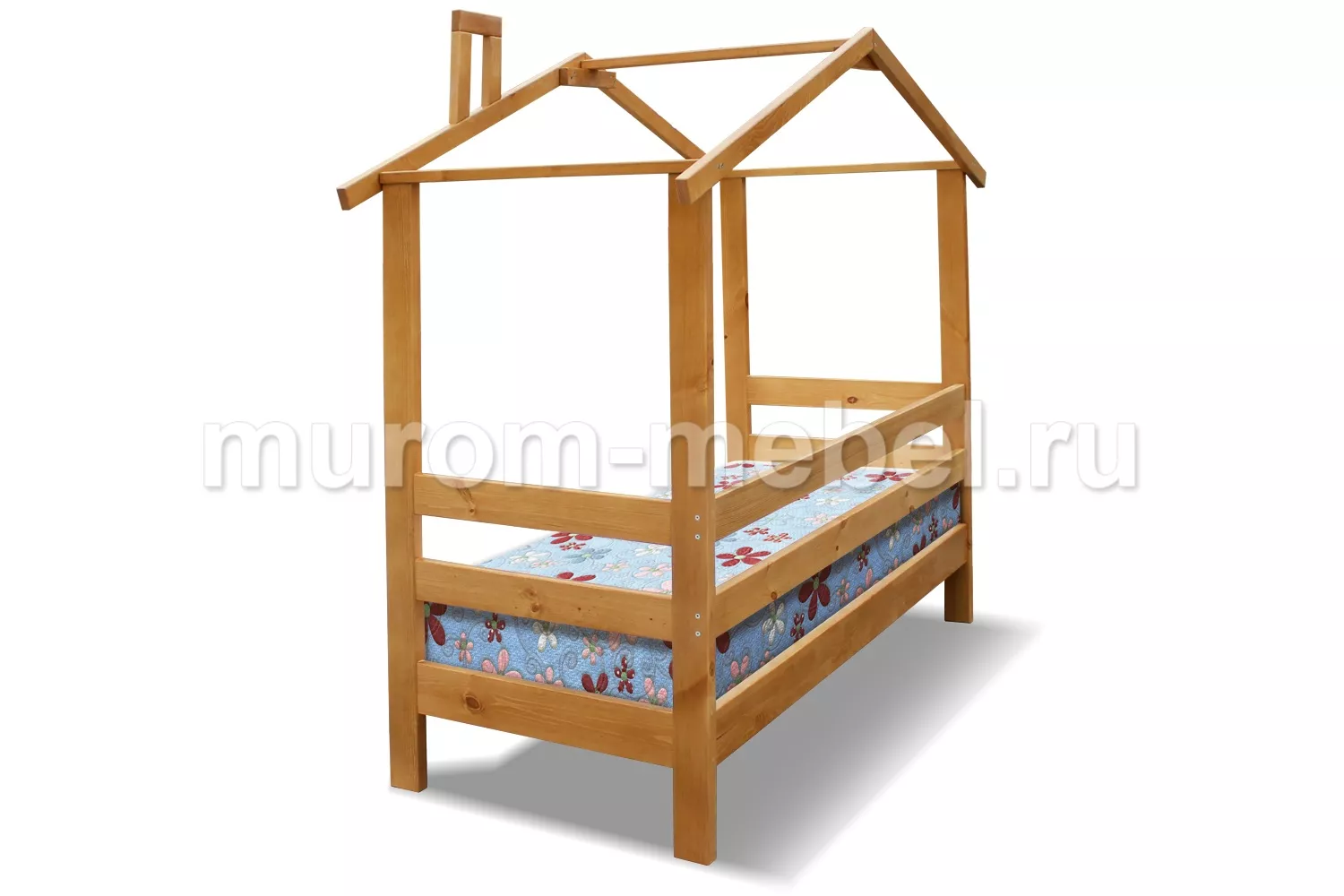 Стремясь красиво меблировать комнату ребенка, совершенно необязательно покупать множество декорирующих предметов интерьера. Достаточно просто отдать предпочтение данной модели кровати. Её конструкция внешне напоминает маленький домик, не занимает много места и отличается высокими эксплуатационными характеристиками.