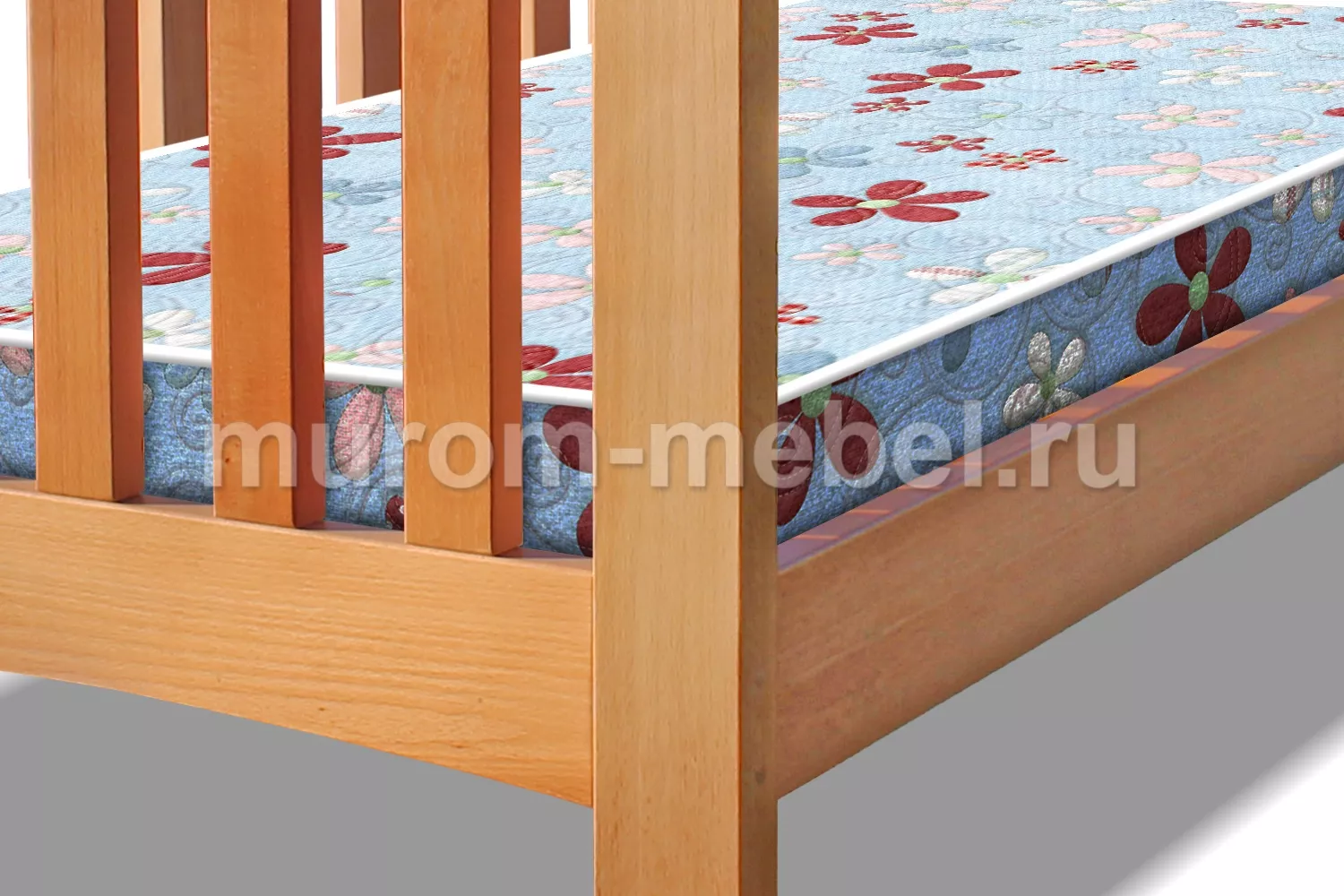 Кровать Карусель отлично подойдёт для детской комнаты. Она полностью выполнена из натурального дерева, который безопасен и даже полезен для здоровья ребёнка. Выделяет вещества, положительно влияющие на самочувствие, располагающие к отдыху и сну.