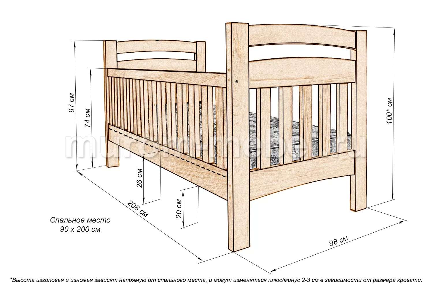 Кровати из сосны | до 1 м | 700 | 600 | от 400 + расстояние |