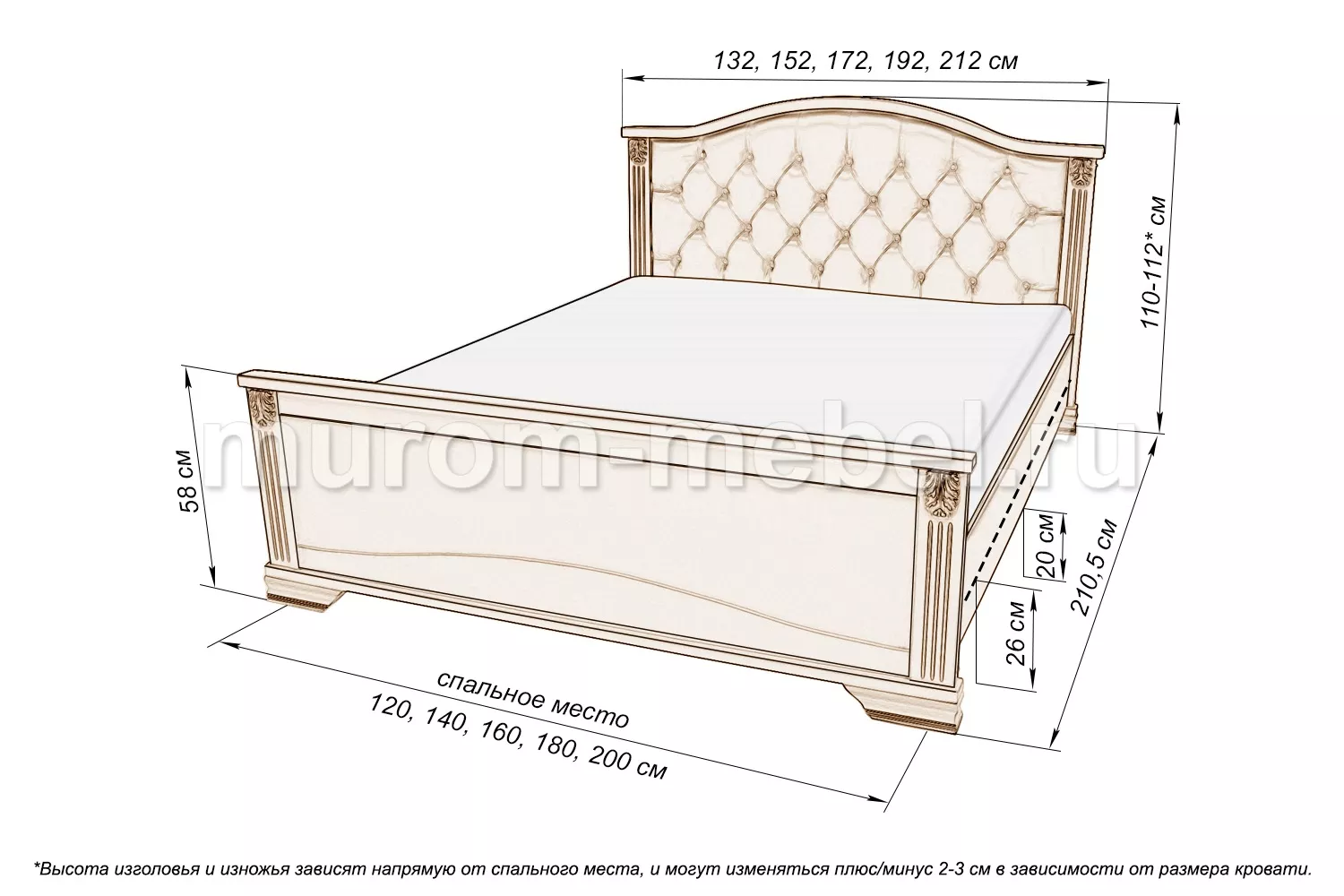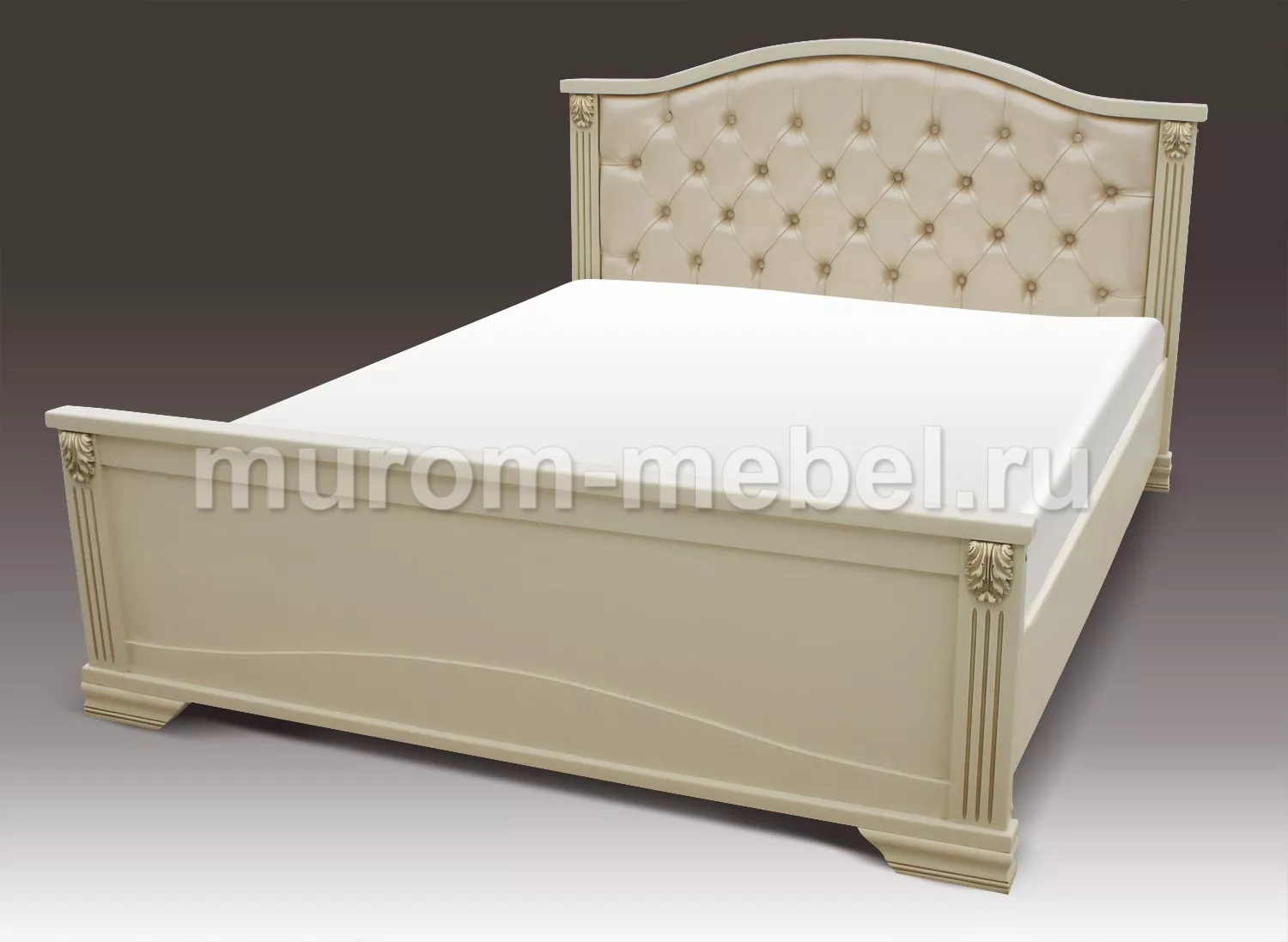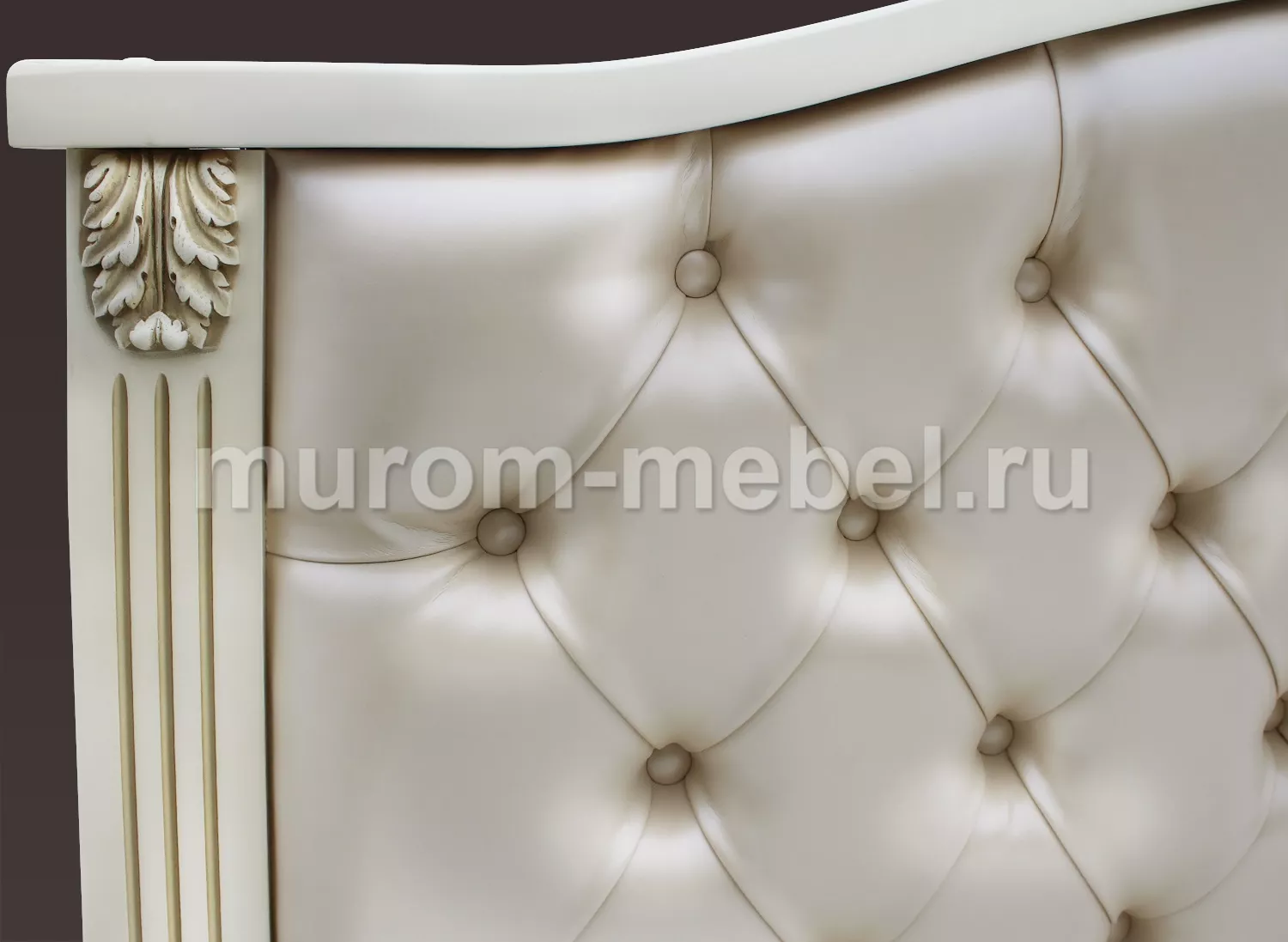 Кровать, оборудованная мягкой спинкой, выглядит презентабельно и красиво благодаря классическому дизайну и каретной стяжке. Украшением служат и резные вставки. Такая модель может быть установлена в спальне, которая обставлена в лучших традициях классики.
