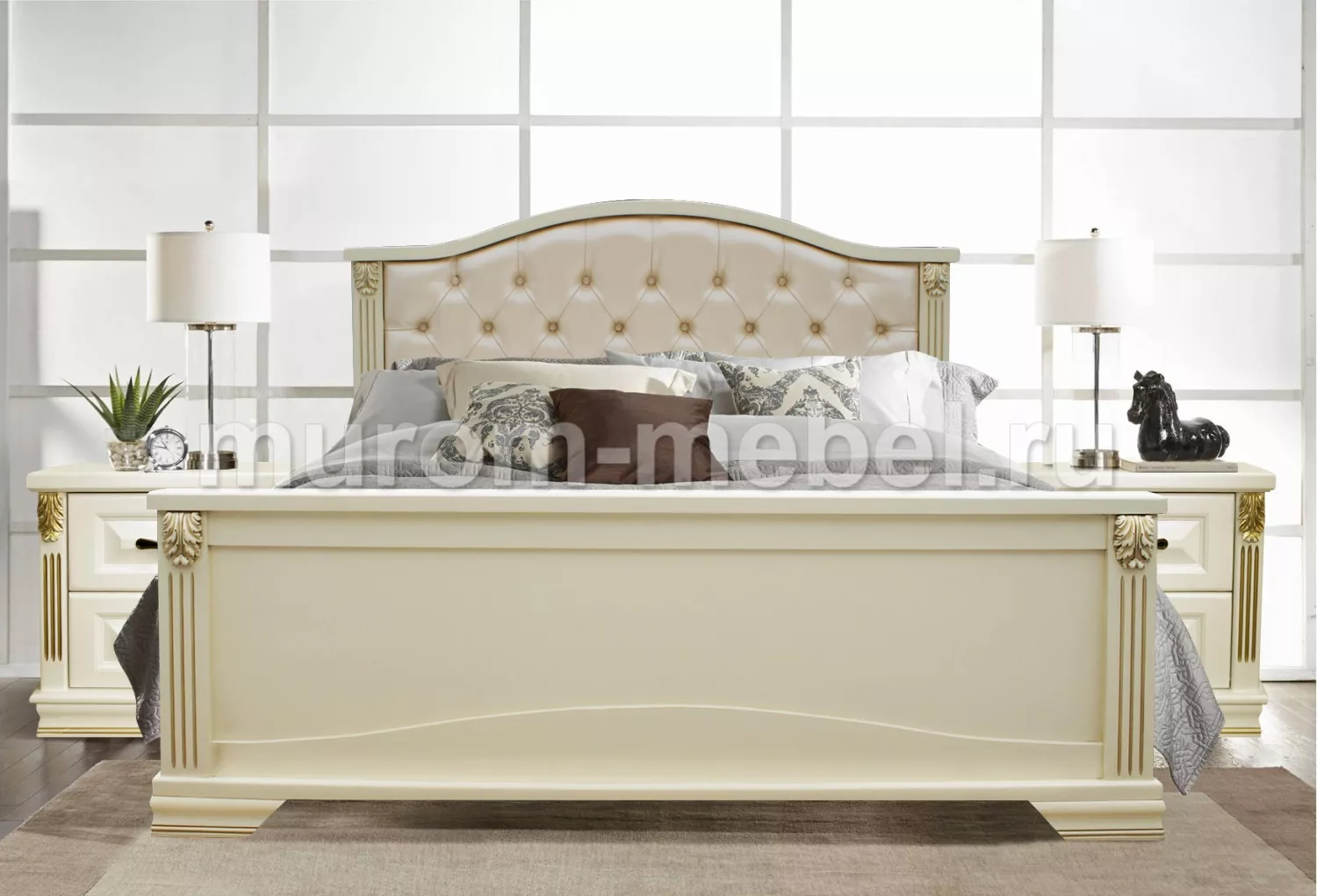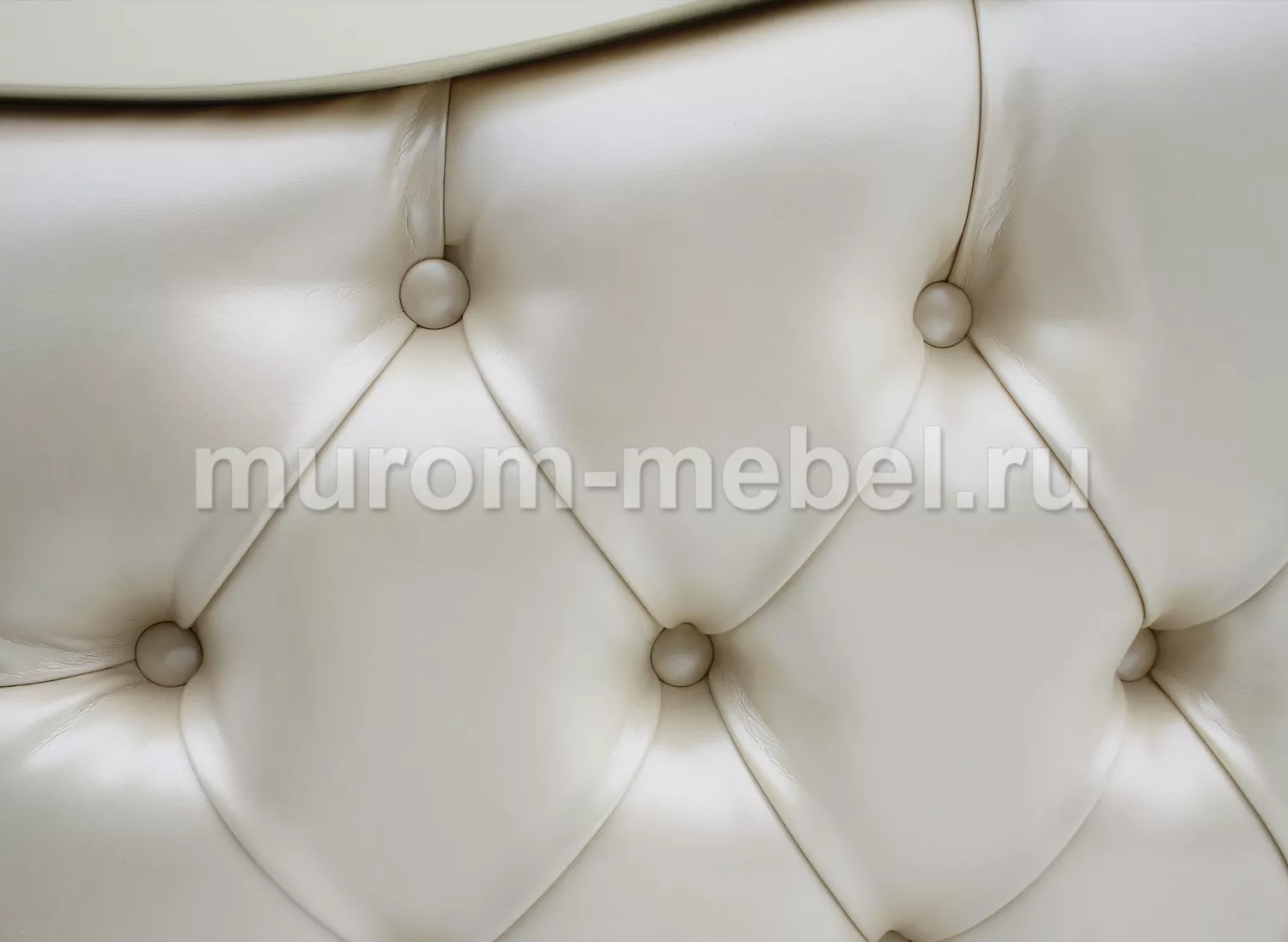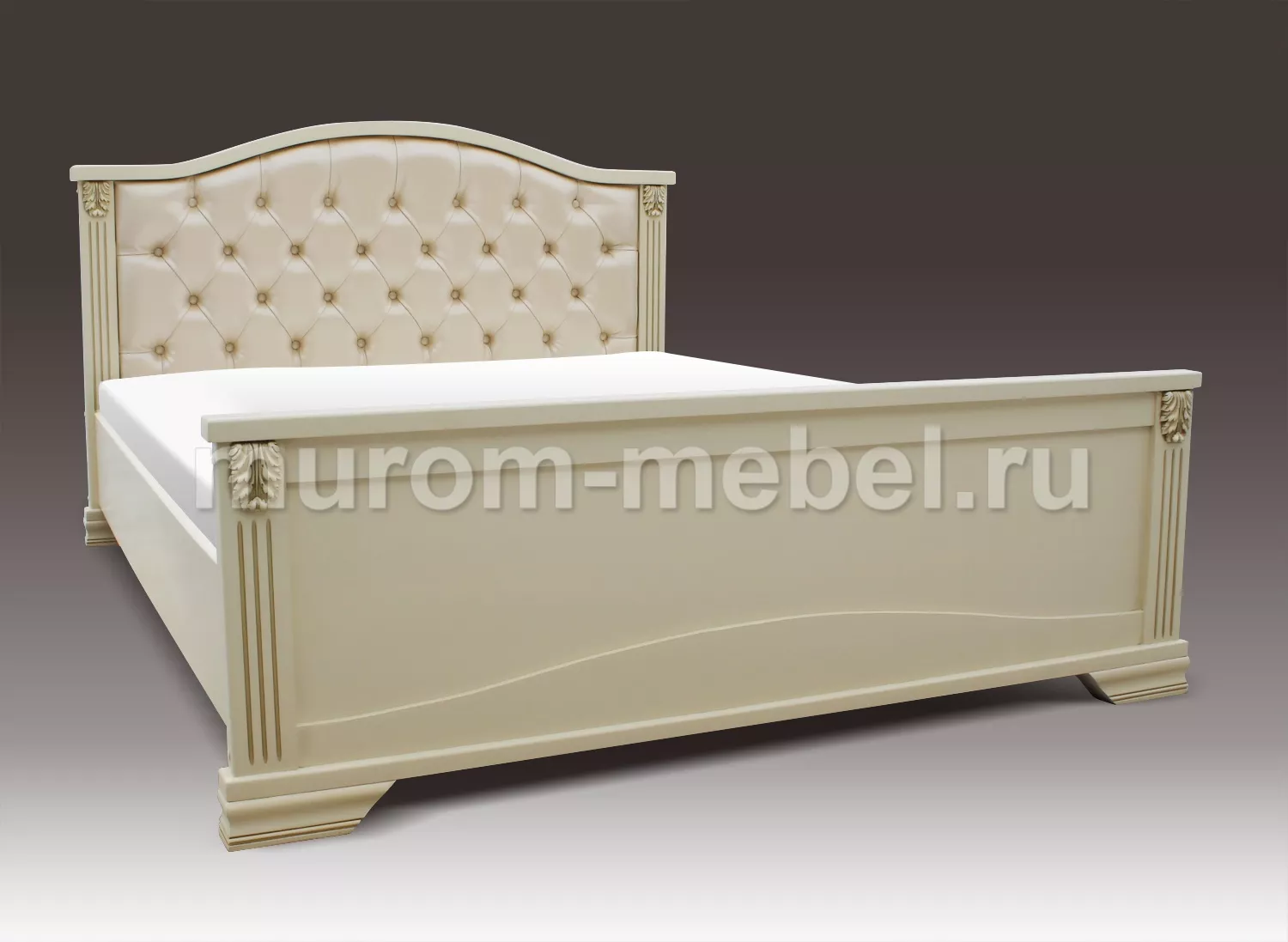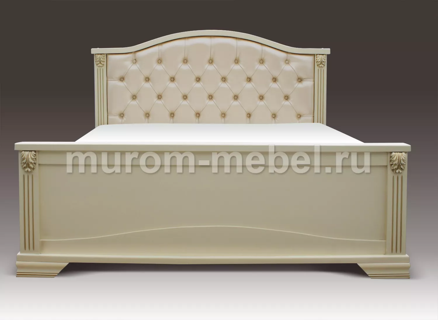 Кровать, оборудованная мягкой спинкой, выглядит презентабельно и красиво благодаря классическому дизайну и каретной стяжке. Украшением служат и резные вставки. Такая модель может быть установлена в спальне, которая обставлена в лучших традициях классики.