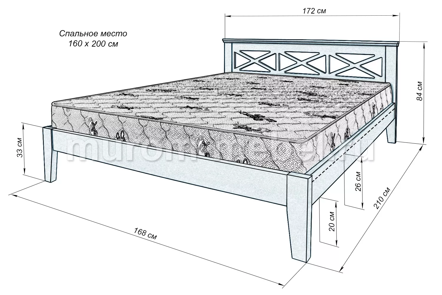 Кровати из березы, бука и из дуба, а так же мягкие кровати из деревадо 1 м13001000от 1000 + расстояние