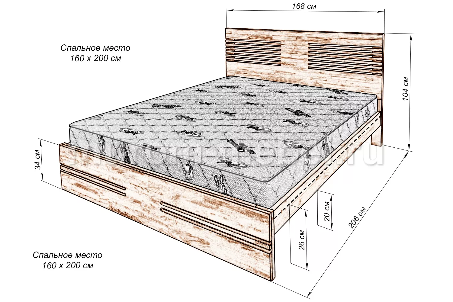 Кровати из березы, бука и из дуба, а так же мягкие кровати из деревадо 1 м13001000от 1000 + расстояние