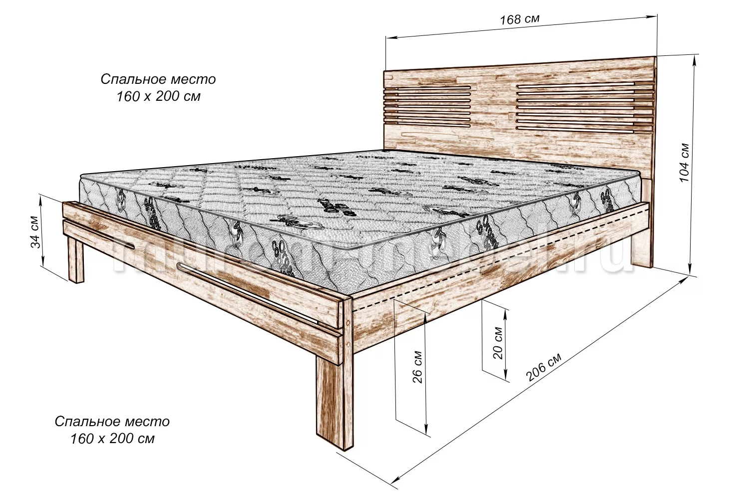 Кровати из березы, бука и из дуба, а так же мягкие кровати из деревадо 1 м13001000от 1000 + расстояние