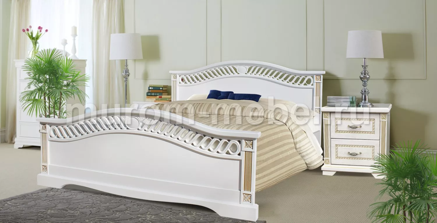 Модель «Милена» — это синоним качества и изящества. Изголовье и изножье кровати украшены необычной резьбой. Она выполнена из березы, а сама кровать изготовлена из сосны. Но эти два материала прекрасно сочетаются по текстуре. Поэтому комбинацию можно считать более чем удачной.