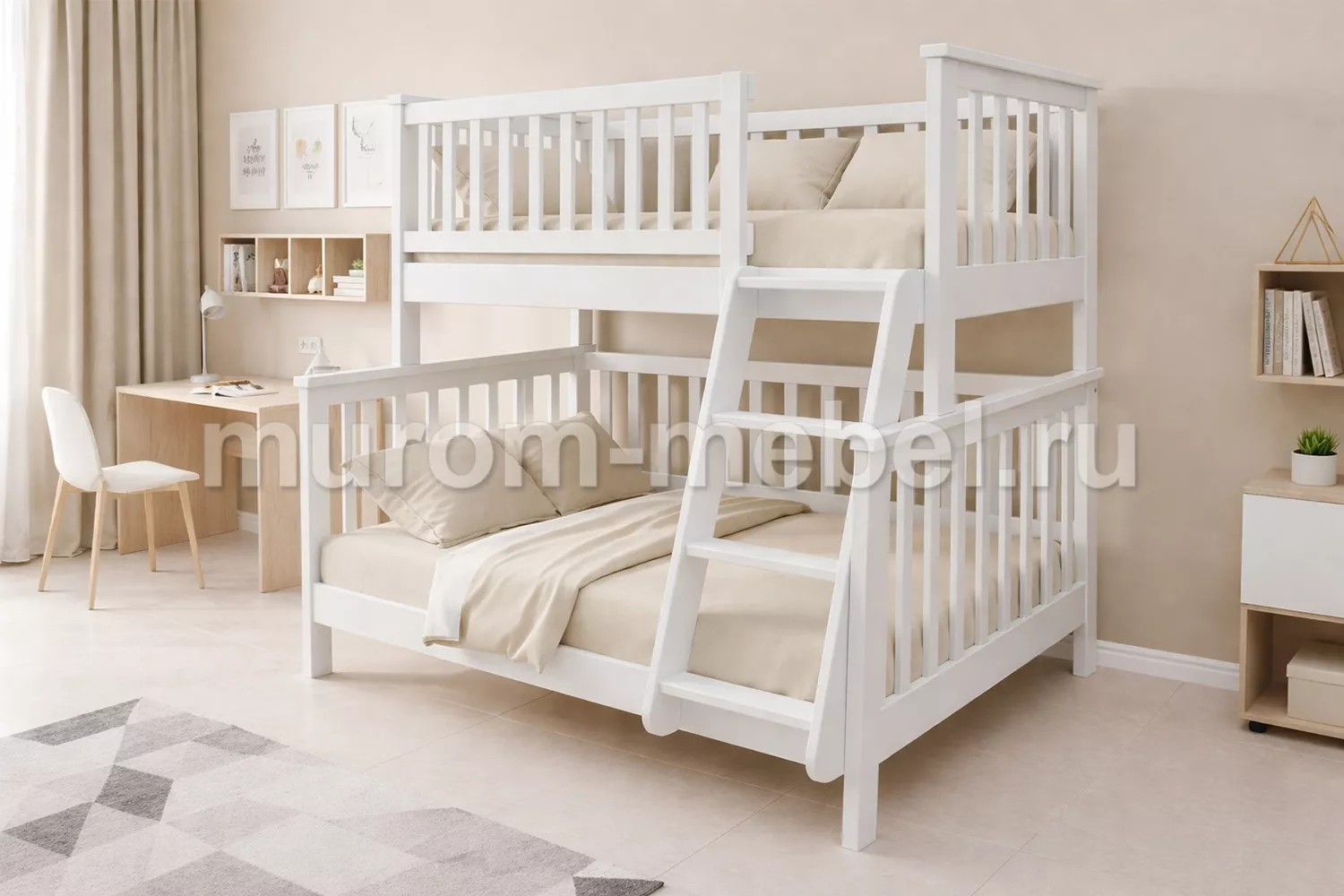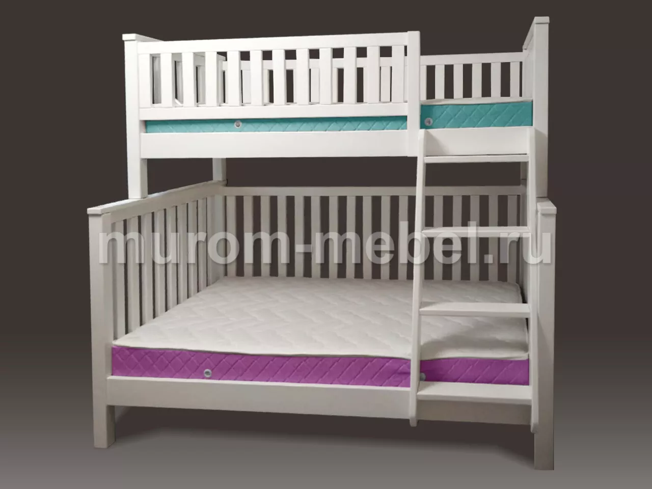 Верхний ярус отделен бортиками, поэтому уровень безопасности данной модели высокий. Изготовлена кровать из прочного, износостойкого, долговечного и невосприимчивого к негативному воздействию внешних факторов материала. Его оттенок можно подобрать в индивидуальном порядке.