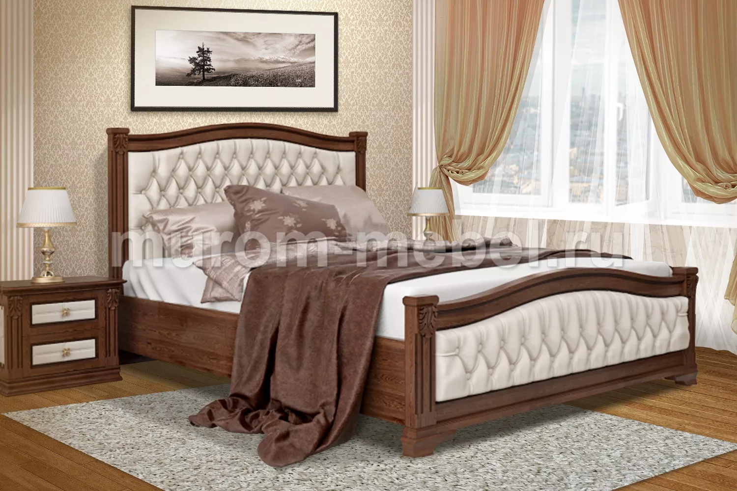 Кровать "Соната 2" обладает высококлассным дизайном и подойдёт для установки в спальнях классического типа. Мягкая обивка на стенке изголовья и внешней деревянной панели не только здорово смотрится, но и обеспечивает комфортную эксплуатацию. Изножье может быть с изгибом или иметь форму прямоугольника. Как и в случае с прочими изделиями, клиент может заказать кровать необходимых размеров и цветов материала. Более того, к мебели можно подобрать дополнительные аксессуары в виде ящичков для белья и прочих элементов.