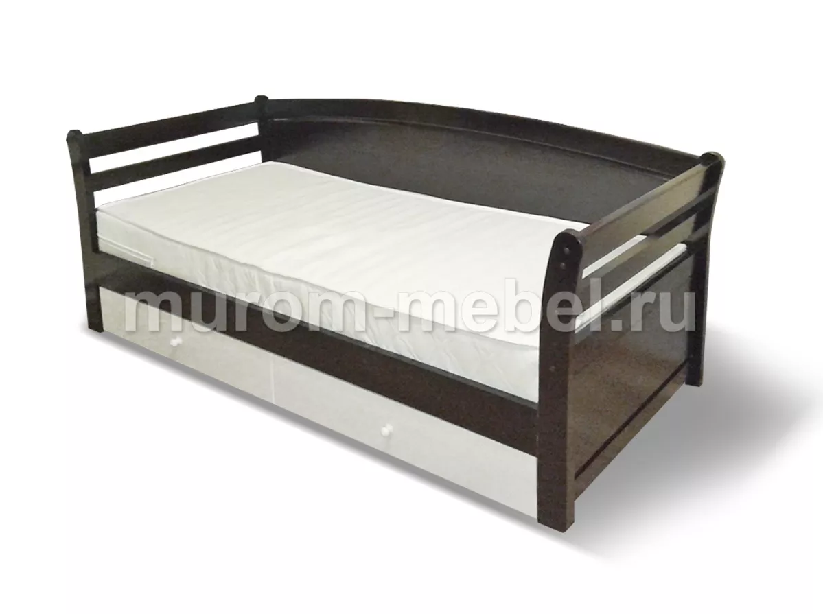 Кровать Верона – это современный вариант комфортабельной кровати, которую чаще всего покупают для своих детей, но заказанные размеры позволяют ее использовать и для отдыха взрослых. Данная кровать хороша тем, что она экономит пространство комнаты, так как ее можно ставить под стенку, а не посреди комнаты, а ее спинка, которая установлена с одной боковой части кровати, будет ограждать человека от контакта со стеной в целях комфорта и сохранения целостности поверхности стены. Также кровать имеет удобные боковины под наклоном, которые предоставляют возможность удобного расположения на кровати в любом направлении. И еще одно преимущество данной конструкции – это встроенные ящики, как дополнительное пространство для хранения.