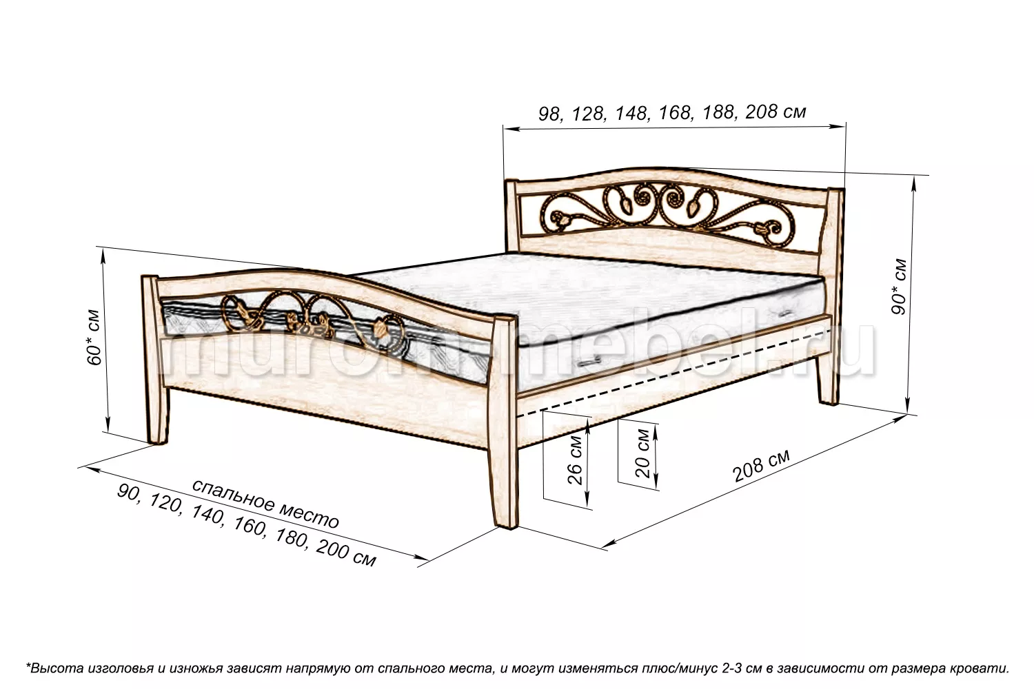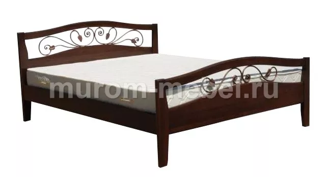 Превосходная кровать «Юлия» (ковка) изготовлена из массива натуральной древесины, имеет классический и элегантный внешний вид, который достигается за счет плавно переходящих линий конструкции кровати, а также основного декоративного элемента в виде ковки. Ковка из металла имеет грациозные завитки с небольшими лепестками на конце каждого завитка. Данная ковка присутствует в задней и передней спинке кровати. Конструкция кровати имеет достаточно высокие ножки, что предоставляет возможность обустройства дополнительного места для хранения вещей, а также у вас есть возможность заказать ящики с роликовым механизмом под кровать.