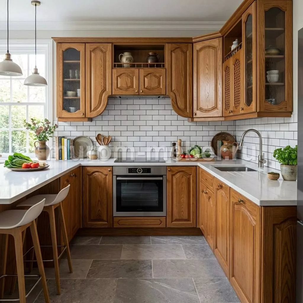 Для экономии пространства в небольшом помещении, производитель позаботился и создал готовый вариант кухни Лада, позволяющий использовать специально отведенное место максимально функционально и комфортно. В производстве был использован высококачественный древесный массив. Использовании разной древесины (сосна, береза, бук, дуб), позволяет создавать мебель различной ценовой категории. Сейчас это весьма актуально. Гарнитур оснащен выдвижными ящиками, открытыми и закрытыми полками (в том числе за стеклянными дверцами) и местом для встроенной раковины. К заказу доступно несколько цветовых решений, ознакомиться с которыми можно в карточке товара.