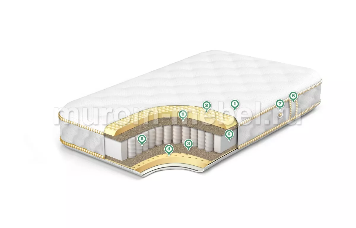 Матрас Элит рельеф CHILD с независимым пружинным блоком, изготовлен из экологически чистых материалов. В его составе кокос, который способен придать необходимую жесткость, и латекс, повышающий срок эксплуатации изделия благодаря устойчивости к перепадам температур и влажности. Также его важной характеристикой является гипоаллергенность. Модель оснащена специальными аэраторами, обеспечивающими естественную циркуляцию воздуха. Верхний слой пошит из двойного жаккарда, который надежно защищает от загрязнений и повреждений.