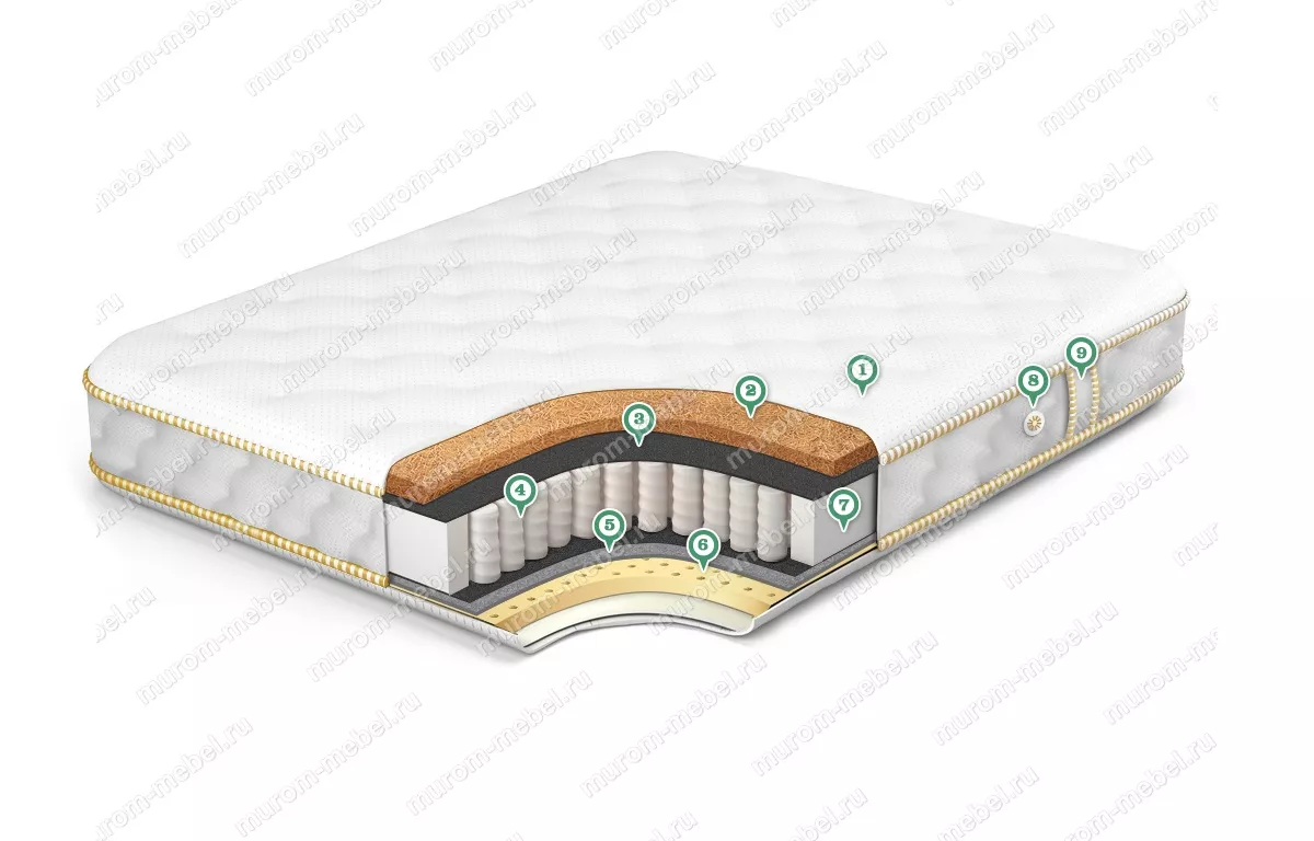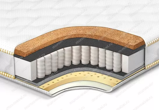 Данная модель в составе своей конструкции помимо независимых пружин, спанбонда, кокоса, латекса и ППУ содержит кокос, который придает изделию требуемой жесткости, обладает отличной вентилируемостью и гипоаллергенностью. Все используемые в производстве материалы долговечны, экологически безопасны и обладают прочностью и упругостью.