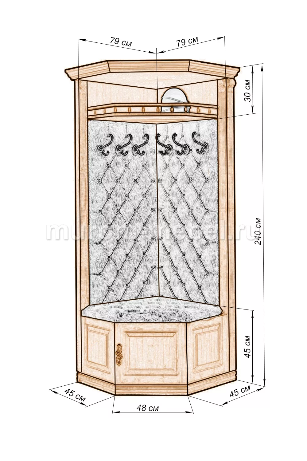 Прихожая угловая 2 из серии "Тунис" с радиусными поверхностями не только будет полезна в организации пространства первой комнаты дома, но также поможет стильно оформить интерьер, удачно вписавшись в помещение небольшой площади. Здесь найдется место для верхней одежды, обуви, головных уборов, перчаток, шарфов и прочих мелочей. А мягкое сиденье поможет с комфортом надеть или снять обувь.