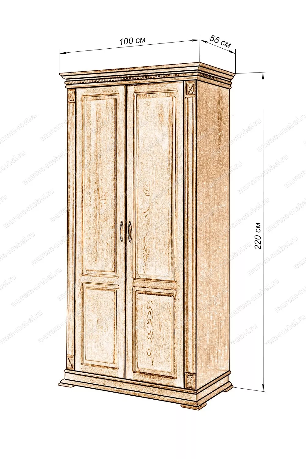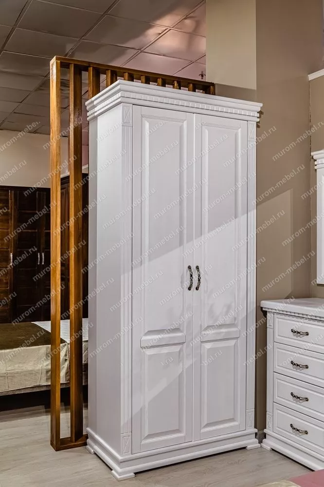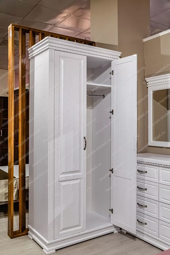 Двустворчатый шкаф Флоренция-1 занимает мало места в помещении за счёт небольшой глубины и ширины. Данный предмет мебели изготовлен из востребованного массива дерева, который устойчив к царапинам, влажности, ударам и температурным перепадам, благодаря обработке его по современным технологиям.