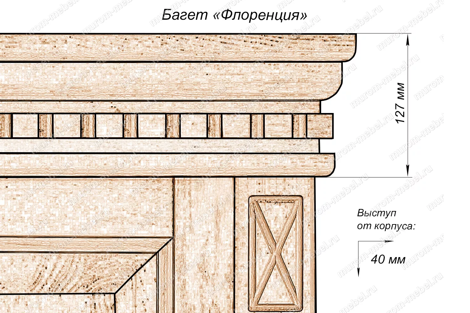 Сосна - щит мебельный сращенный (класс Экстра), задняя стенка: ламинированная ДВП (без доплаты) или фанера в цвет изделия (с доплатой). Изготовление из березы, бука, дуба – с доплатой.