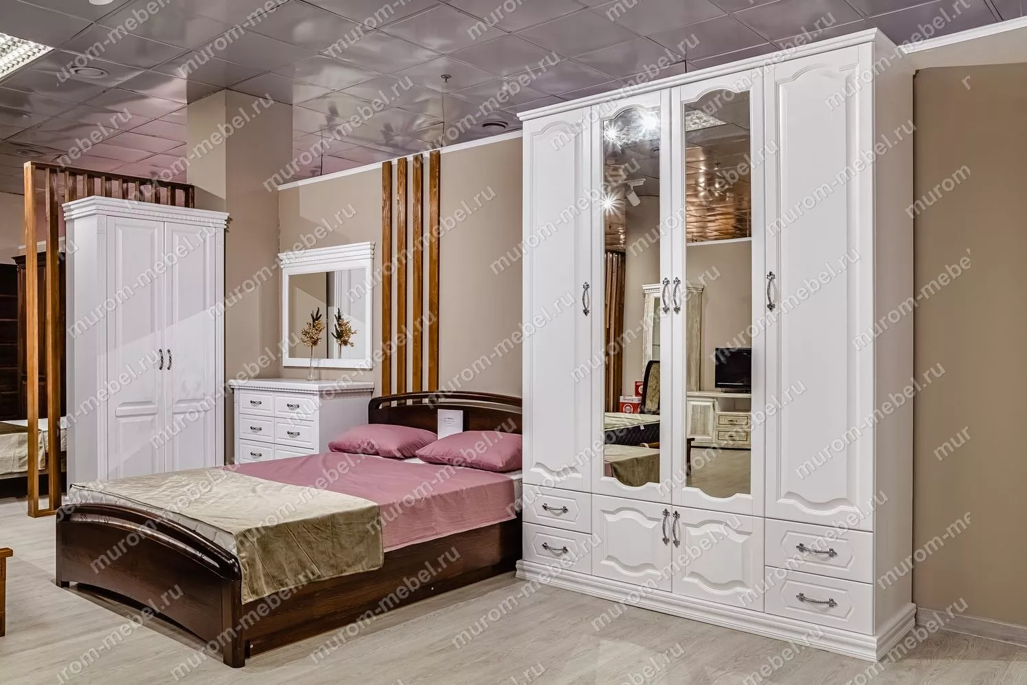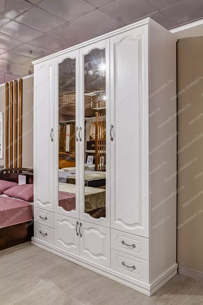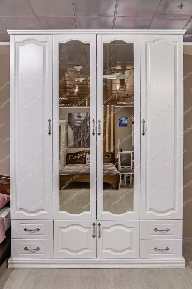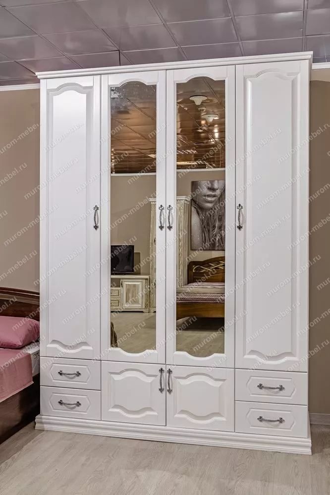 Шкаф 4-х створчатый из серии "Лира" (белая эмаль)
