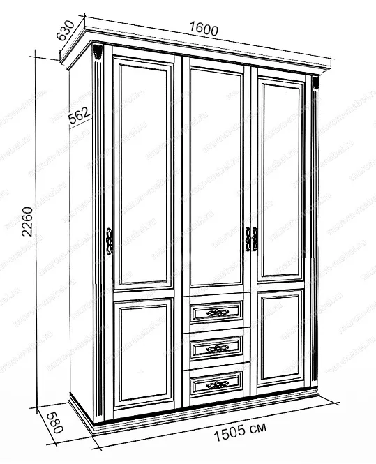 Шкаф 3-створчатый из сосны из серии "Дарина"