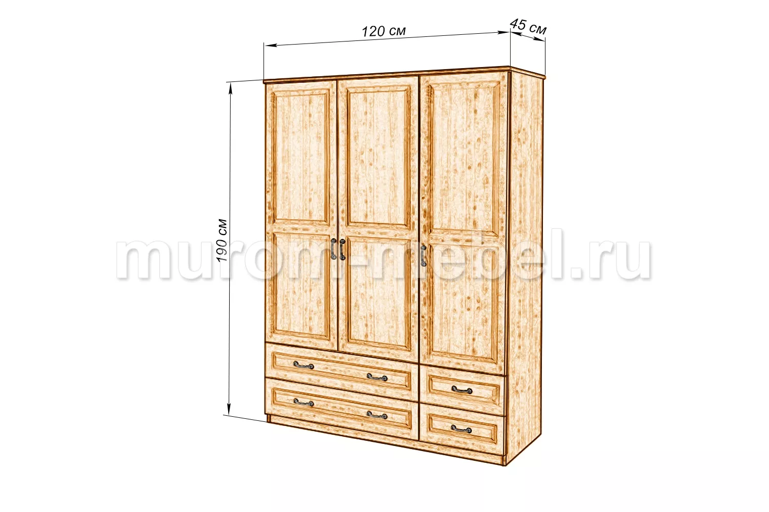 Сосна - щит мебельный сращенный (класс Экстра), задняя стенка: ламинированная ДВП (без доплаты) или фанера в цвет изделия (с доплатой). Изготовление из березы, бука, дуба – с доплатой.