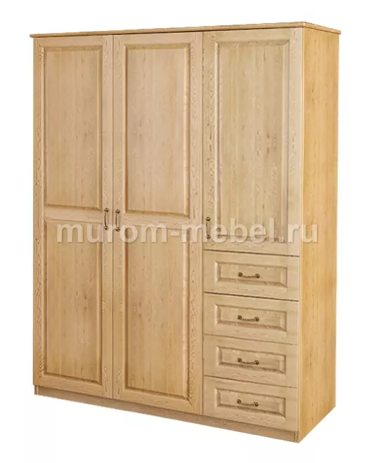 Сосна - щит мебельный сращенный (класс Экстра), задняя стенка: ламинированная ДВП (без доплаты) или фанера в цвет изделия (с доплатой). Изготовление из березы, бука, дуба – с доплатой.
