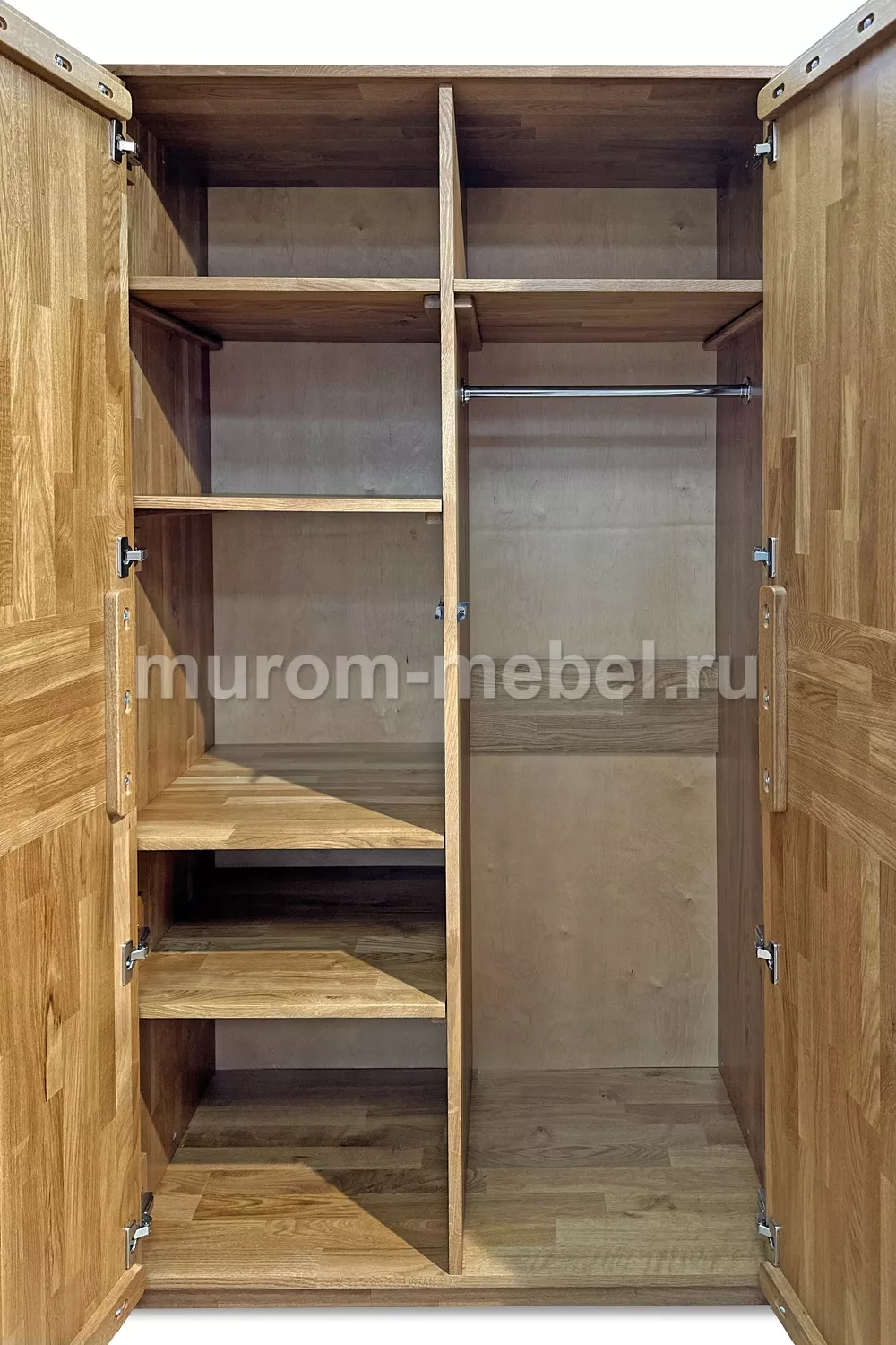 Сосна - щит мебельный сращенный (класс Экстра), задняя стенка: ламинированная ДВП (без доплаты) или фанера в цвет изделия (с доплатой). Изготовление из березы, бука, дуба – с доплатой.