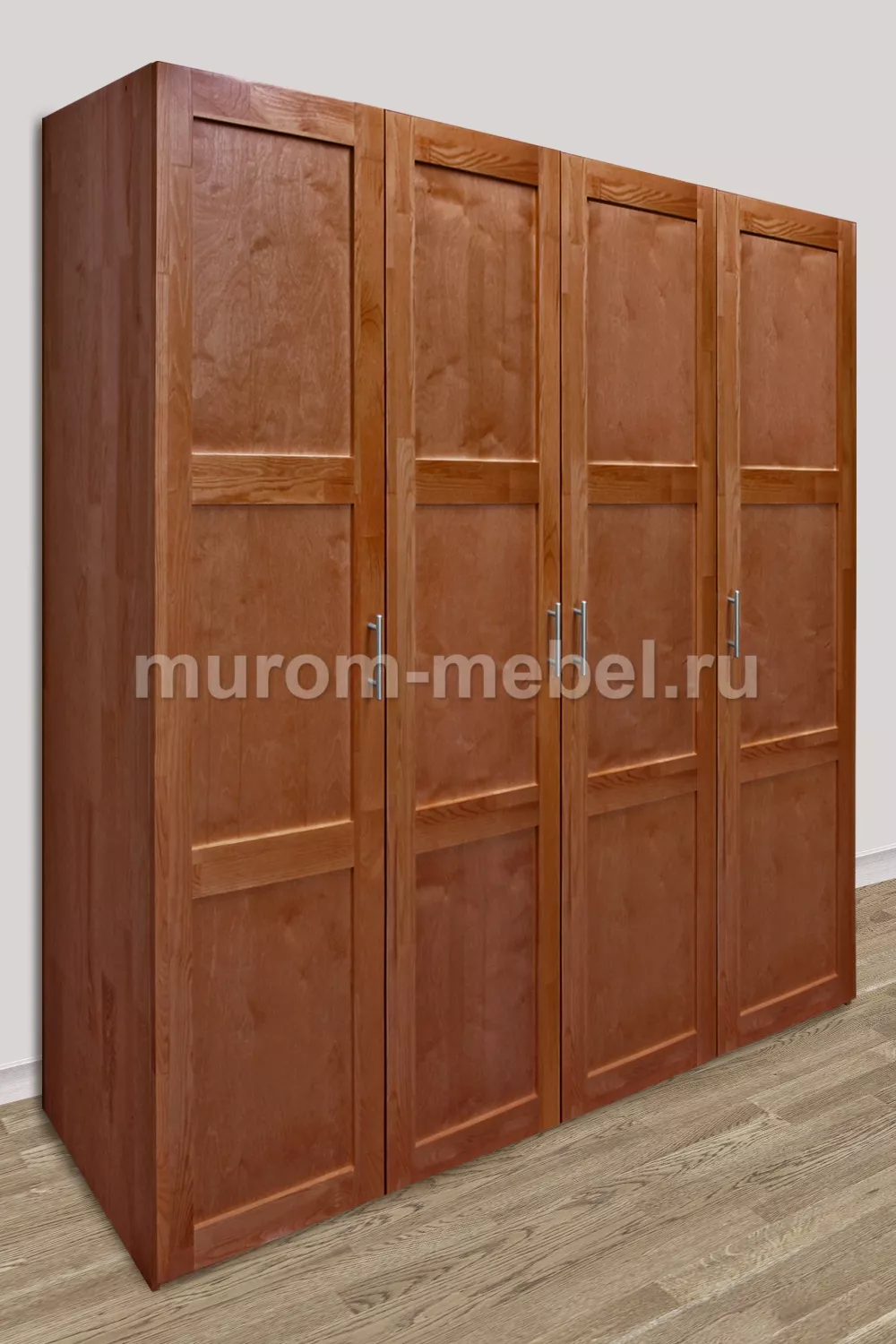 Сосна - щит мебельный сращенный (класс Экстра), задняя стенка: ламинированная ДВП (без доплаты) или фанера в цвет изделия (с доплатой). Изготовление из березы, бука, дуба – с доплатой. Фасады изготовлены из мебельного щита с фанерными или МДФ вставками.