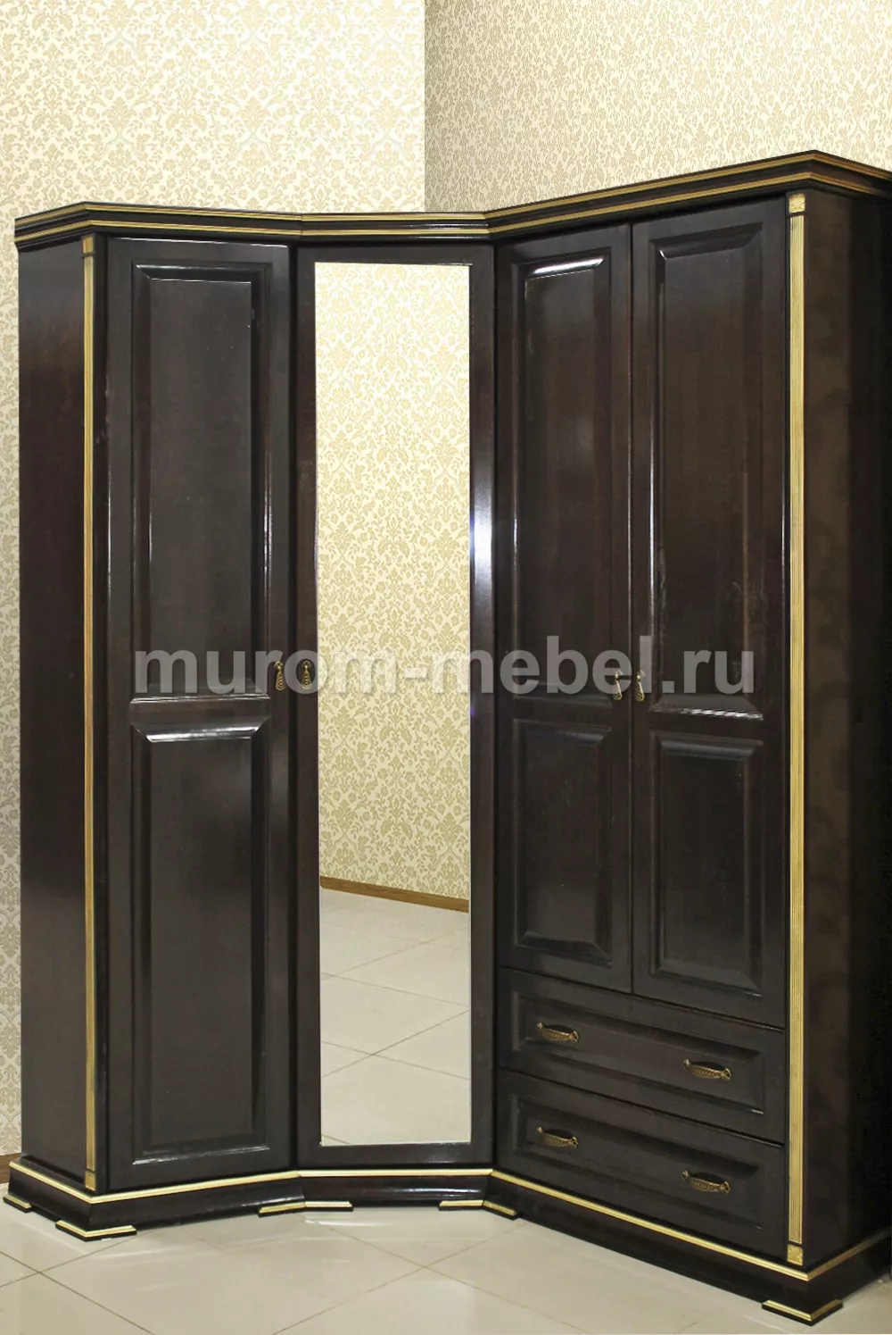 Основной особенностью представленной модели является наличие узкого высокого зеркала, форма которого весьма необычна. Именно за счет неё и удается визуально сделать модель более утонченной. А узкие полосы, обрамляющие шкаф, подчеркивают его изящество и создают иллюзию того, что он имеет округлую форму.