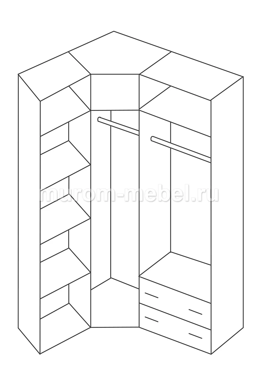 Необычная модель может похвастаться высоким уровнем функциональности. Шкаф оснащен двумя ящиками, которые располагаются внизу, и двумя отделениями для хранения одежды. Примечательно, что один из отсеков более узкий. Поэтому в нем с удобством можно разместить летнюю одежду, а в более широком — зимнюю.
