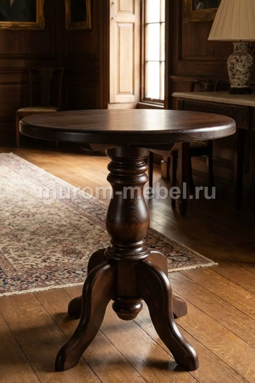 Круглый небольшой стол из натурального дерева. Прекрасно подходит для прихожей. Также отлично будет смотреться в спальной и гостиной, но на своем месте. Изготовлен при помощи высококачественного оборудования.