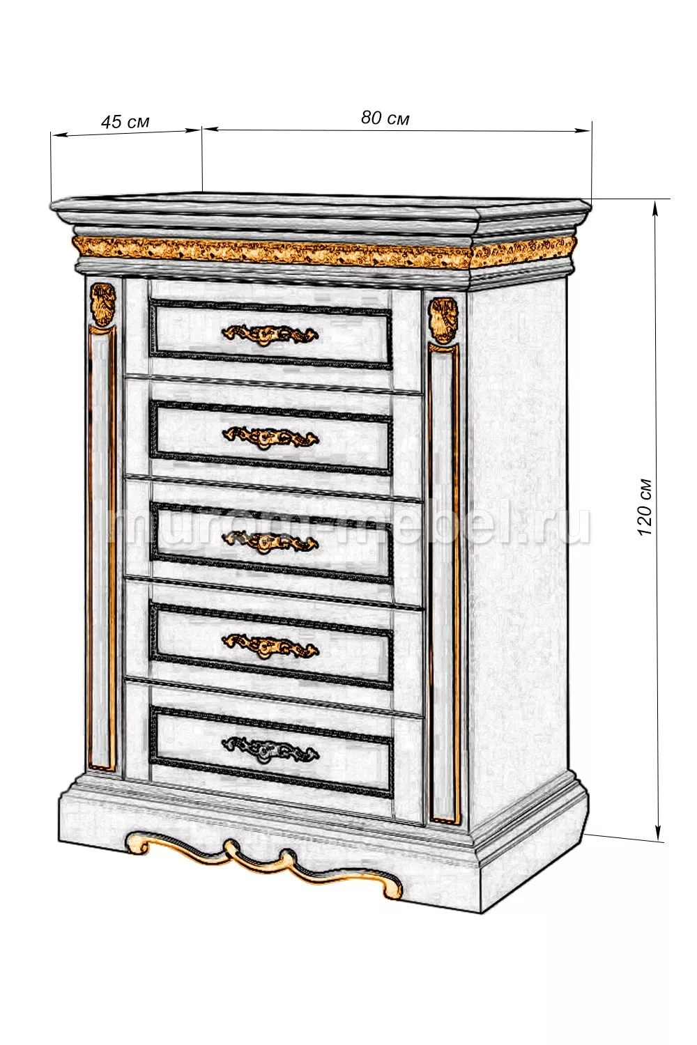 Тумба Милано 5 ящиков (сосна, резьба береза)