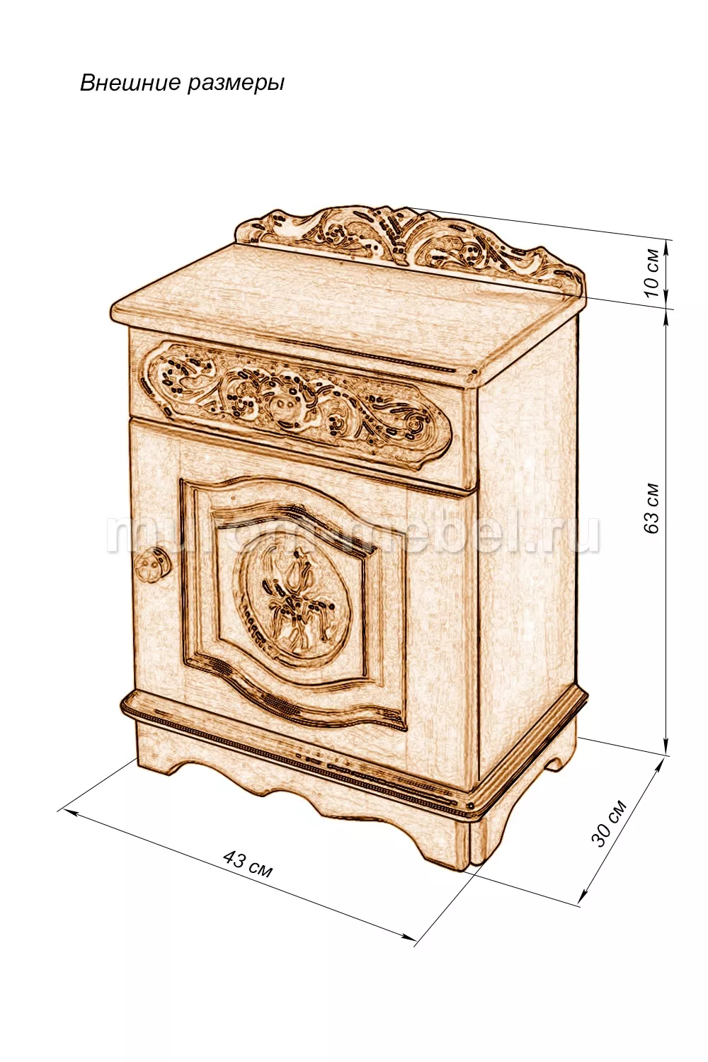 Прекрасный вариант тумбы для настоящих ценителей изящества и художественной красоты. Помимо безупречного внешнего вида, достаточно вместительная и удобная в использовании. Выполнена из массива деревьев хвойных пород. Экологически безопасная и гипоаллергенна.